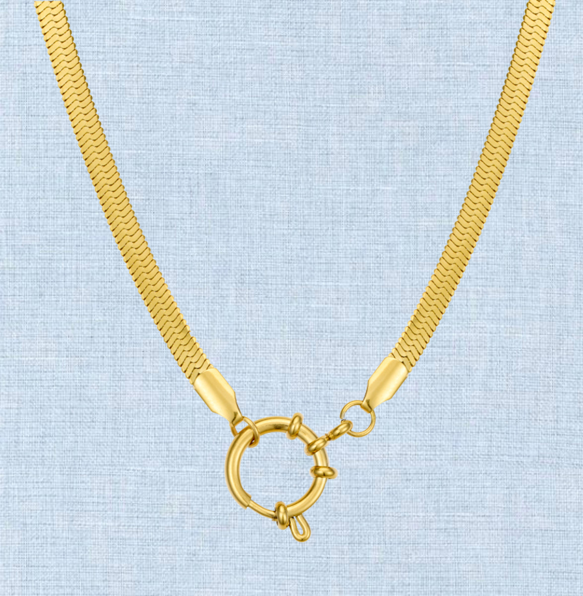 Meet the Addison Chain ✨ Sleek, shiny, and forever golden. The herringbone style that goes with literally everything. Perfect solo or stacked. Waterproof + anti-tarnish, made to last.