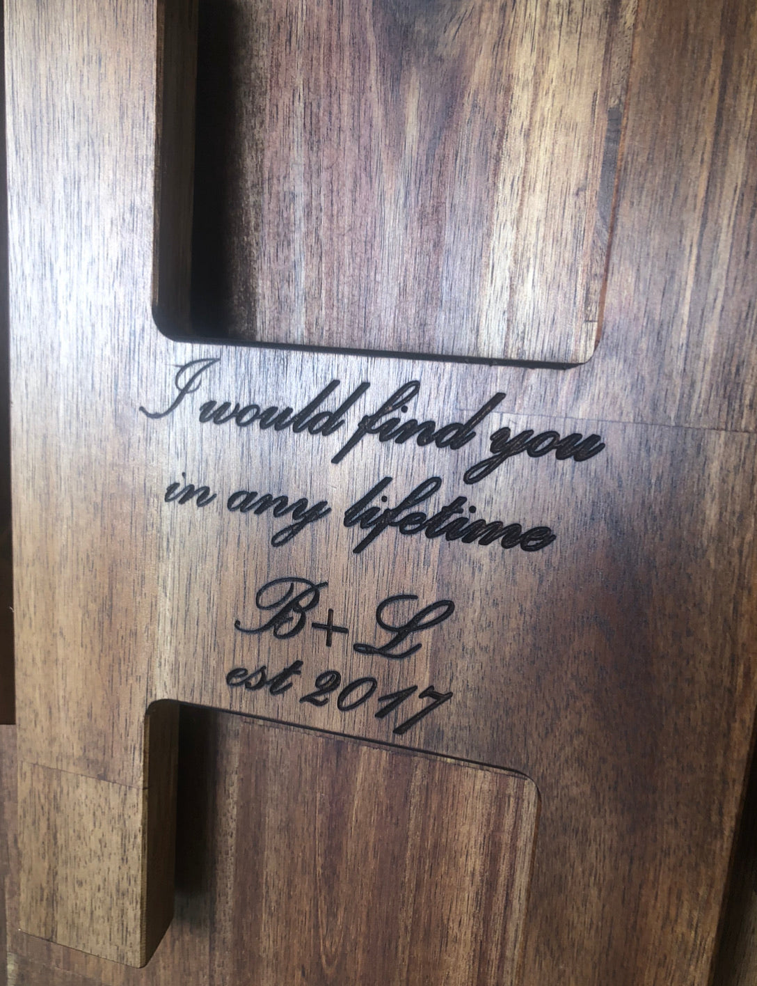 We can carve out initials, a date, a quote or all of the above! Just add what you want engraved to the notes of your purchase.